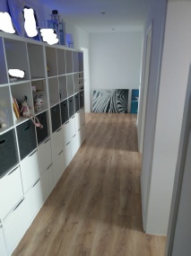 Laminatboden, Einbauschränke, Außenjalousien, Kermi Design-